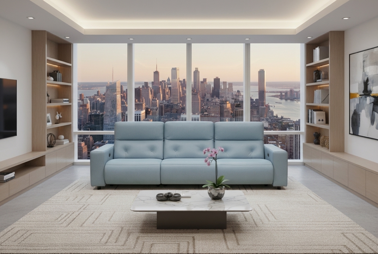 The Violetta motorized sofa blends traditional aesthetics with a refined urban style, making it a perfect addition to retro interiors. Its design features a high back and a comfortable seat, constructed with varying densities of padding to provide both ergonomic support and luxurious comfort.