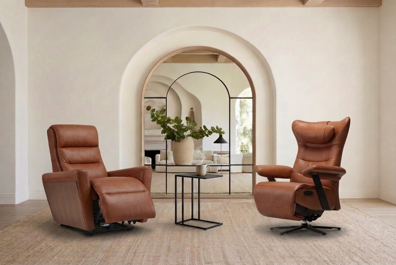 Equipped with a motorized articulating headrest, the URBANO provides ergonomic support, ensuring your lower back is properly aligned. This multifunctional chair is a swivel, glider, and rocker recliner available in motorized versions. It comes in HIS and HER sizes and offers three armpad style options: Overlayed armpad, Timber arm (VARM), or Leather armpad. Available in all our leathers and select fabrics, the URBANO armchair and sofa range is an essential addition to any home, combining comfort and practicality with ease of use.